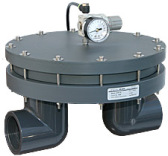Equilibar 4″ EVR-BD32 vacuum regulator with PVC body and manual pilot setpoint control-Our precision high flow vacuum valves are available in sizes ranging from 1 1/2″ to 4″ with material options of stainless steel 316/316L, anodized aluminum or PVC depending on the application requirements for temperature and chemical resistance. Each EVR is delivered with a manual pilot setpoint regulator for convenient knob adjustment. Electronic pilot regulators can be purchased if automating the EVR is your preference.